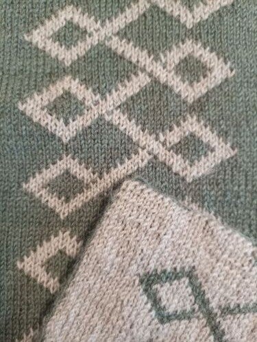 Zwei Gesichter! Wie bei einem analogen Foto entsteht hier eine positive und eine negative Seite. Da man im Prinzip zwei zusammenhängende Teile strickt, ist diese Technik besonders für warme Winterkleidung geeignet.