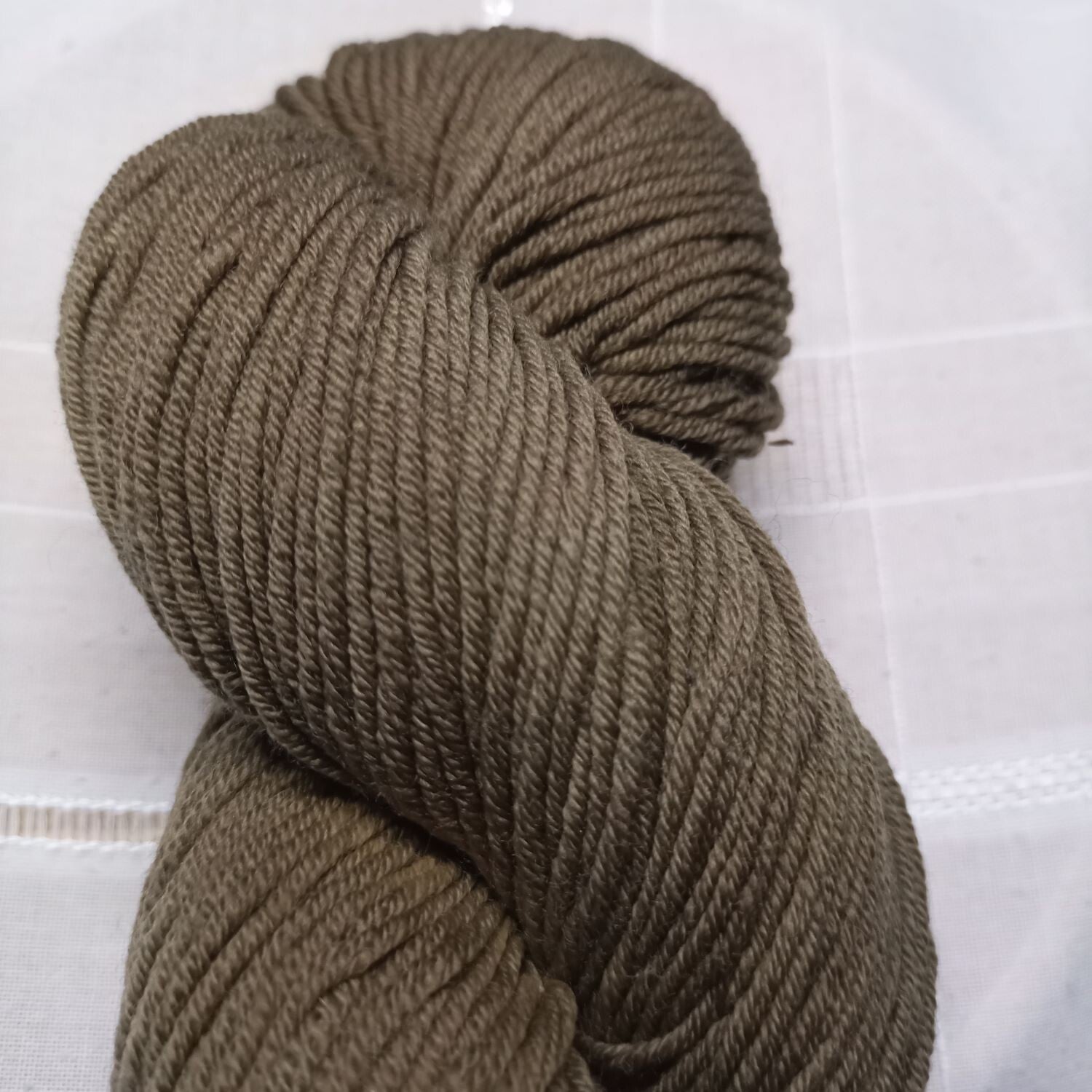 MerinoSilkBig in Olivegrün, mit Johanneskraut von Hand gefärbt.